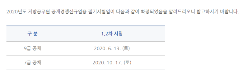 Á¦¸ñ 2020³âµµ Áö¹æ°ø¹«¿ø °ø°³°æÀï½Å±ÔÀÓ¿ë½ÃÇè ÀÏÁ¤