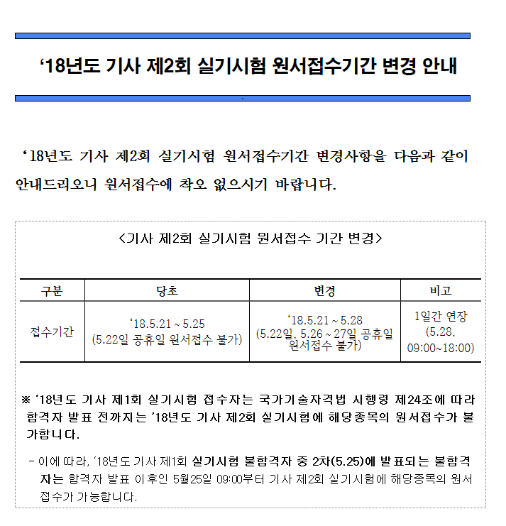 Á¦¸ñ ±â»ç Á¦2ȸ ½Ç±â½ÃÇè ¿ø¼­Á¢¼ö±â°£ º¯°æ(¿¬Àå) ¾È³»